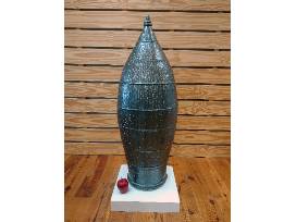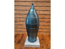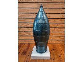 Daniel is a driven, creative soul who is never fully content with his work and is always pushing the limits of what he and his clay can do whether it be with a large pot or a large-scale installation. This large, tall wood-fired and salt-glazed marker with its exceptional and gorgeous glaze runs was made from local Seagrove-area clay. Approx 44.5" H x 16" Dia.