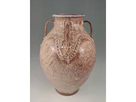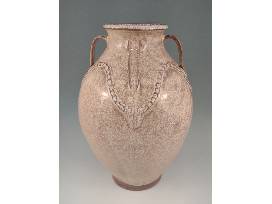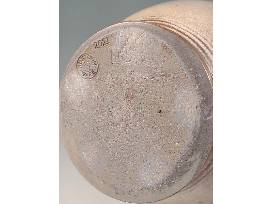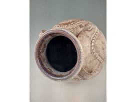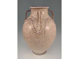 Travis Owens keeps a pretty low profile but the quality and craftsmanship of his work is second to none and he respects and honors the tradition and history of Jugtown Pottery as he goes about his work there. This absolutely gorgeous Ash White variation glazed four-handled Persian Jar is a testament to his skill. The Persian Jar form was introduced to Jugtown Pottery by Jacques Busbee not long after he and his wife, Juliana, started the business in 1917, and it remains one of their most iconic forms today as is evidenced by this exceptional piece by Travis, a true craftsman. Making this piece extraordinarily special is that this is the first Persian jar Travis has glazed with the new Ash White variation glaze! It is gas-fired and lightly salted. 16.25" H