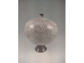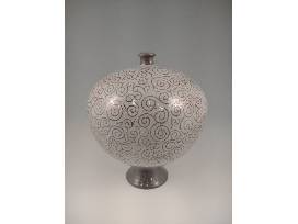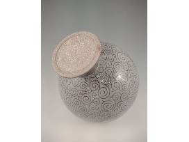 Ben is a potter but he is more than just a potter; he is also an art teacher within one of NC's public school systems! He says, "Working with traditional and developing mediums offers me an opportunity to share old, current, and new perspectives both through my personal art and with my students." Here is a beautiful Korean-influenced vase decorated using a colored clay inlay technique called Mishima. This style of pottery is a revival of Buncheong Korean pottery that the Japanese, American, and International communities have been experiencing over the past several decades. Gas-fired. 12.5" H.