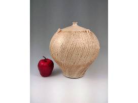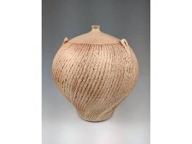 Po Wen, a ceramics artist and educator who taught ceramics at UNCG from 2009-2021, just recently became the executive director of the Floyd Center for the Arts in Virginia. Before UNCG, he was the director of the Jingdezhen International Studio in China. Like Po Wen himself, this lovely vase with its soothing color and combed texture exudes a sense of tranquility and harmony. 10.75" H