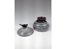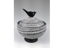 Kyle Carpenter has been a full-time potter craftsman in Asheville, NC, since 2002, and is a member of the Southern Highland Craft Guild as well as Artaxis. This absolutely delightful and charming lidded bird jar exemplifies the striking blend of simplicity of form and function and aesthetic elegance characteristic of all his work. 6.5" H