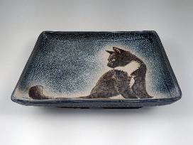 Charlie has been teaching ceramics at his alma mater Guildford College in Greensboro, NC, since 1999 while doing his studio work as well. This lovely tray with its handsome Tuxedo Cat will lend an air of sophisti-cat-ion to any room. 10.75" x 9.25" x 1.75"