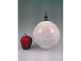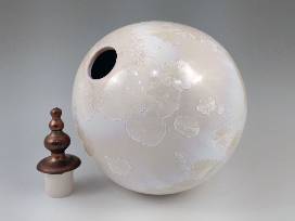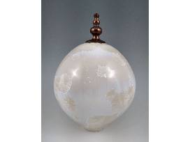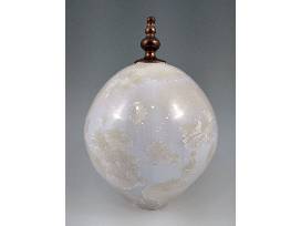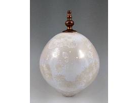 Deborah's studio, the place where she strives for craftsmanship and believes that objects should be both visually pleasing and functional, is located on the Cape Fear River in Wilmington, NC. This eye-catching porcelain orb with its removable finial features a white crystalline glaze with a number of impressively large crystals. 9.5" H