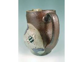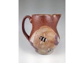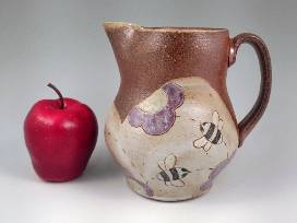 Originally from Estonia, Anne is one of the hardest working people you will ever meet and not just with resect to her skillful pottery-making. She's a potter, an artist, a gardner, a beekeeper, and more. She truly keeps herself as busy as a bee. In case you didn't already know, she was putting bees on her pottery before she decided to start beekeeping. This lovely pitcher is, well, one honey of pitcher. 6.75" H