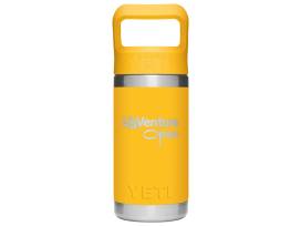 Nordic Blue Hopper Backpack and 2 U.S. Venture Open branded Alpine Yellow Rambler Jr. 12 oz Kids Bottles with straw caps.