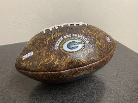 Green Bay Packers Football autographed by all players and coaching staff at the beginning of the 2021 regular season. The original signatures were transferred to the football, one black Duluth fleece stadium blanket, one Duluth canvas tote, $50 Scheels gift card and $25 Amazon gift card.