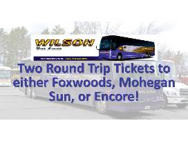 Two (2) tickets on a bus to either Foxwoods, Mohegan Sun or Encore and back. Bus departs East Templeton @ 6:45 am, Leominster/Friendly's @ 7:15 am and will arrive at casino at 9:00 am. Bus departs casino 4:00 pm.