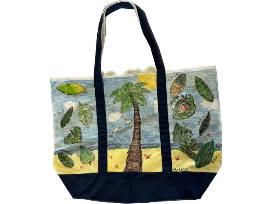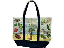 Each student in the class contributed to the creation of the tote, using fabric markers to draw on the canvas.