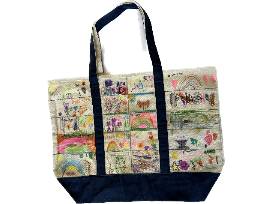 Each student in the class contributed to the creation of the tote, using fabric markers to draw on the canvas.