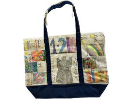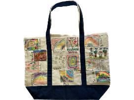Each student in the class contributed to the creation of the tote, using fabric markers to draw on the canvas.