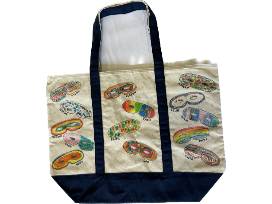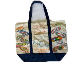 Each student in the class contributed to the creation of the tote, using fabric markers to draw on the canvas.