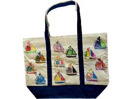 Each student in the class contributed to the creation of the tote, using fabric markers to draw on the canvas.