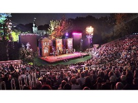 Shakespeare in the Park is an annual event held at the Delacorte Theater featuring large-scale productions of famous works. Since its inception over 45 years ago, the Theater has hosted over five million people from across the globe.
