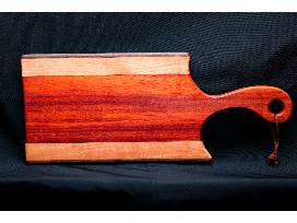 - One-of-a-kind, handcrafted Charcuterie Board (20" x 8"), made by our very own Principal Stacie's father! This board is made from African Paduak, Cherry and Walnut wood. It is coated with food grade mineral oil to enhance the color and protect from moisture.
