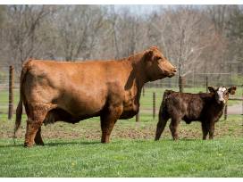 Our 2022 offering of spring pairs is better than ever and this is a strong one to lead off the lineup! This red, purebred is a daughter of famous Simmental cow line built around the legendary Hart's Hollywood Queen cow that recorded more than 270 cattle in the ASA herd book. This young cow is a big-boned, high-maternal tank and she is nursing a sweet purebred heifer by Pick Me!