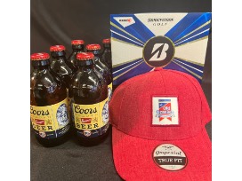 This "Old Ozaukee" baseball hat pays tribute to the Moreau family. Also included is a dozen "DHS Golf Outing" Bridgestone X5 golf balls, and a 6-pack of Coors Banquet beer.