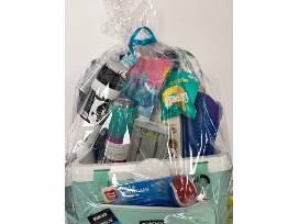 Enjoy this wonderful beach day basket filled with goodies for the beach including water bottles, an Igloo cooler, sunscreen, sweets, gadgets, games, and more!