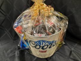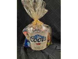 Beer Basket includes a 6-pack of Coors Light, peanuts, bar mix, Bluetooth speaker, Coors hat and 3 scratch tickets in a Coors Bucket.