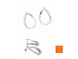 Flattering and glamorous, this stunning pair of twisted hoops will become your favorites! Designed in California and finely crafted in Europe, in solid 925 sterling silver with heavy gold overlay. A stunning array of zirconia adorn inside and out, exuding fine quality - the best simulated diamonds ever created! Hypoallergenic, lightweight, exceptional craftsmanship - overall stunners! Outstanding packaging for gifting or keepsakes! Created exclusively for the philanthropic community.
