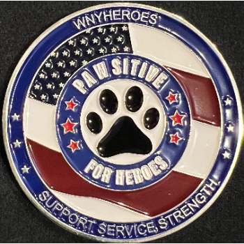Support to end Veteran Suicide. Your purchase of a Pawsitive for Heroes Challenge Coin will benefit our Service Dog program which helps veterans live fulfilled lives.