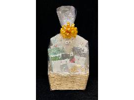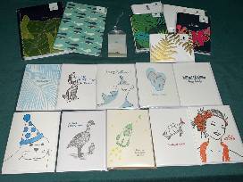 Includes: (10) Individually wrapped greeting cards; (1) luggage tags in hard plastic case; (1) large notebook with gold foil design on cover with 64 blank pages; (2) packages of 6 folded note cards each with envelopes; (2) packages of 6 note cards each with envelopes; (1) packages of 6 folded note cards with gold leaf design with envelopes