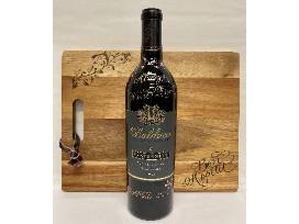 Woodburned Charcuterie Board & Painted bottle of 2013 Baldacci Red Wine