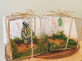 Voucher for Five Live Monarch Butterfly Chrysalis Classic Box. Valid between 10/10/2022-10/10/2023. Available on Oahu only. Not applicable for special gift boxes during holidays. Must present voucher upon pickup to redeem.