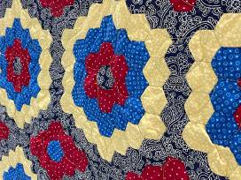 This bright quilt was hand pieced in an English Paper Piecing (EPP) method, then machine quilted, by women living in poverty in Honduras. All of the makers are working to feed their families, keep their kids in school and create a better future. Donated by Onecommonthread.org, nonprofit located in San Antonio, Texas.