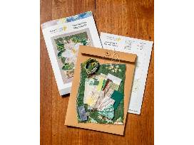 An Australian company has designed and created lovely "Slow Stitching" kits. For beginner to advanced stitcher, each kit includes vintage, reclaimed and Liberty of London fabrics. Using the enclosed pattern, shapes are cut and glued or stitched onto background fabric (included). DMC cotton floss and needle for embellishments are also included to create an organic, collage effect.
