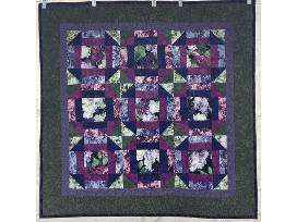 Machine pieced blocks were acquired at a rummage sale, and put together into this 35" square quilt that could be used as a table topper or wall hanging. Pieced, completed and machine quilted by the donor using rulers.
