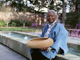 Mary Jackson sweet grass basket with lid made in a traditional African shape, measuring 6" in diameter. Mary Jackson is a McArther Genius Grant recipient whose work is in the Smithsonian. Beautiful and functional!