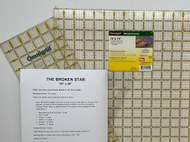 Kim McLean's "The Broken Star" pattern to construct a 98" x 98" (king size) appliqué quilt. No plastic templates included. Good stash-buster for appliqué shapes. Plus 4 yards solid blue cotton fabric, new 6" x 24" Omnigrid ruler, and new 15" square Omnigrid ruler.