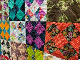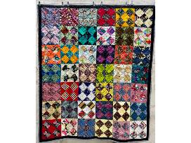 Lap quilt or wallhanging measuring 62" x 57". Each square block contains a solid and contrasting print featuring the dominant color. (Based on Judy Gauthier pattern found in her "Quilts for Scrap Lovers" book. 100% cotton, machine pieced and quilted.