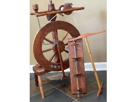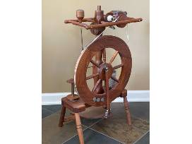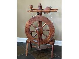 Working spinning wheel, used but not antique. Donor has spun all fiber types on this wheel, made of black walnut. Includes 6 bobbins and lazy kate. Upright (castle) style, measuring 29" tall; lightweight and portable. Skein winder is cherry wood. Spins beautifully! Shipping is not available on this item-it must be picked up at the museum during business hours, due to fragile nature of the item.
