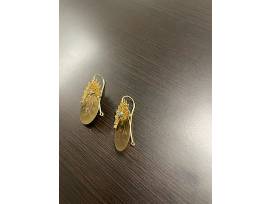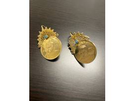 Ladies unique solid 18k yellow gold "Reza Shah, King of Persia" drop earrings with turquoise gemstone inset.