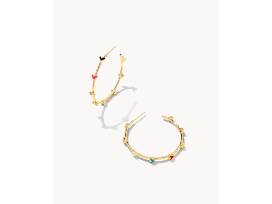 Haven Heart Gold Hoop Earrings in Multi Mix, a sweet statement dotted with hand painted enamel hearts, an iconic symbol everyone loves to love.