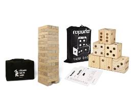 Enjoy your back yard with yard dice + yard jenga, a TMY Projector 7500 Lumens with Projector Screen, 1080P Full HD Supported Portable Projector, and marshmallow skewer set!