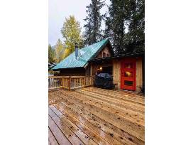 1150 square foot cabin with a generous arctic entry for your gear, a small deck in the front, and a spacious cedar deck at the back of the cabin.