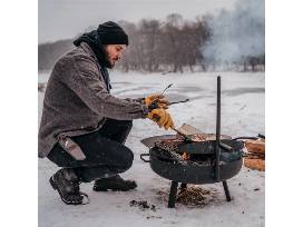 Can be adjusted for different cooking and grilling with open fire or charcoal.