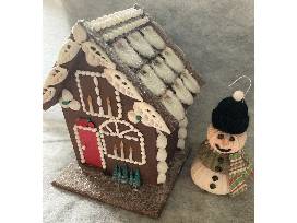 Start with this Forever Gingerbread House (wooden house painted to look like gingerbread accented with natural seashells to resemble icing). Then place this adorable "Preppy" Snowman next to it. The snowman is made of natural Sea Urchin shells and decorated with real Anthracite coal. Adorable!
