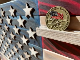 Display them proudly on this one of a kind US Coin Holder Flag, made of hardwood by a Task Force 160th Nightstalker Door Gunner.