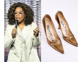 Take a walk in Oprah's shoes! Icon Oprah Winfrey autographed both of these gorgeous gold Jimmy Choos!