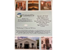 6. $150.00 Gift Card: FACIAL OR MASSAGE AT TRANQUILITY MIND & BODY WELLNESS SPA 88 NOBLE AVENUE, MILFORD