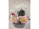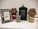This gift basket includes a scroll Candle Warmer Lantern, 2 City Creek candles, spiced apple and spiced wassil, It also includes several For Every Home items including a deluxe dual warmer for cubes, candles and nectar, and 5 lampshades. Two are dark brown, one is light brown, one black and one dark blue. Also included is a 5x7 brown decorative frame. Your home will smell and look wonderful with these additions.