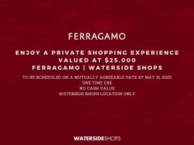Cultivate your new Italian luxury collection with an exclusive $25,000 private shopping experience for two with champagne at Ferragamo in Waterside Shops. Following your shopping spree, you will enjoy a delectable dinner at BrickTop's.