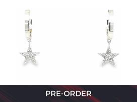 Delicate hoop earrings with a STARability "star" drop, adorned with 18, vs1 diamonds per earring. (11 mm diameter x 28 mm high)