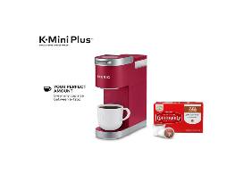 Keurig K-Mini Plus Single Serve K-Cup Coffee Maker in ATPE Red and Pecan Praline Coffee K-Cups