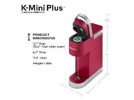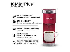 The Keurig K-Mini Plus Single Serve Coffee Maker perfectly brews coffee, tea, hot cocoa, specialty, and iced beverages in any size cup from 6 oz. to 12 oz. Compact and portable with full size features, it is ideal for coffee on the go!