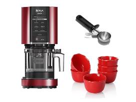 Ninja CREAMi? Ice Cream Maker in ATPE Red with OXO Ice Cream Scoop and Six Red Ice Cream Bowls from Sweese
