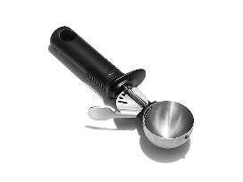 Designed to easily scoop even the hardest ice cream, the OXO Good Grips Trigger Ice Cream Scoop will have everyone screaming for ice cream. Features a unique squeezing mechanism on the non-slip grip handle that releases ice cream with ease. Made of stainless steel, it is dishwasher safe and BPA free, and it comes with a limited lifetime manufacturer's warranty.
